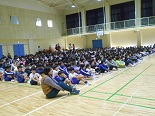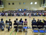 体育館が感謝の気持ちいっぱいに