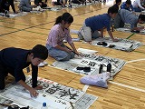 本日の5,6時間目6年生は学年で書きぞめをしました。