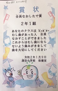 本日、むし歯治療が全員終わったクラスがまた一つ誕生しました。