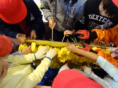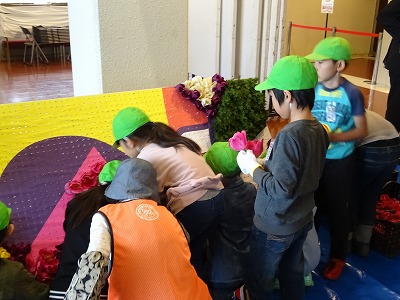 大きな花絵なので、表と裏で友達と声をかけ合わなくてはうまくいきません!