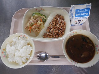 じゃがいもと小松菜のみそ汁・牛乳です。