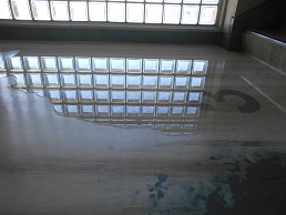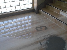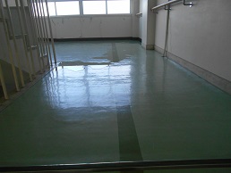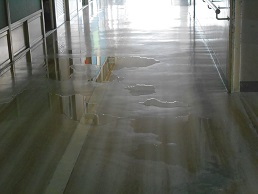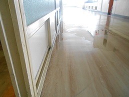 職員と手分けして、水浸しになった廊下の水をふき取り、きれいになりました。