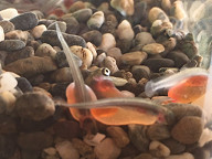 様子を見に行った時、1匹が上にあがってきて楽しそうに泳いでいました。急いで写真を撮ろうと思ったら、下に降りてしまいました。残念。