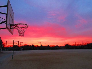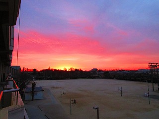 素晴らしい朝焼けが、校庭と教室から見えました。