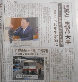 10月11日に行いました、深谷小出身 ドトールコーヒー創業者 鳥羽名誉会長の講演の記事が埼玉新聞に掲載されました。校長室廊下に掲示しますので、ご覧ください。また、25日の埼北よみうりにも掲載予定です。