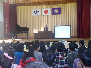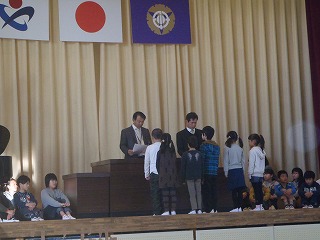 全校の児童や先生方を前にして緊張はしていたようですが、立派に自己紹介できました。