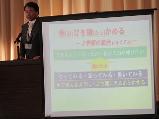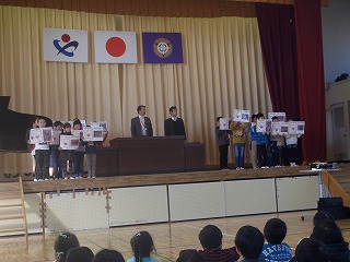 各学級の2学期までの「仁」の心を育む取り組みについて紹介し、表彰されました。