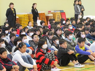 始業式では深小っ子のシャキッとした元気な顔が体育館に揃いました。