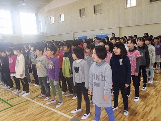 平成29年最初の校歌斉唱は、実は六学年全てが揃って歌う最後のものでした。