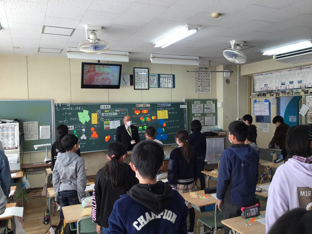 様々な行事が中止や変更になった中、6年生は全校をリードするために頑張ってきました。そのような中、校長先生が6年生のために算数の特別授業を行ってくださいました。
