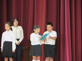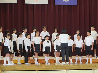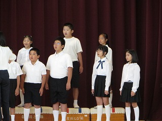 10月21日に行われる深谷市音楽会に学校代表として出演する4年3組が『みかんの花咲く丘』『カントリーロード』の2曲を全校の前で披露しました。授業や休み時間に一生懸命練習した4年3組。心と気持ちが一つになったとても素晴らしい合唱でした!