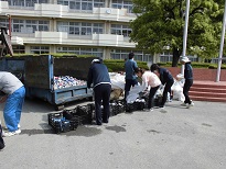 また、朝早くから地区の回収に当たってくださった方々、学校で業者さんの車に積み込んでくださった方々、本当にありがとうございました。