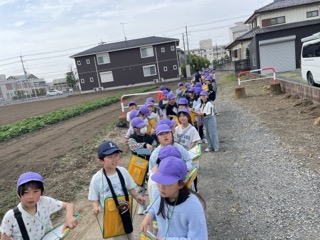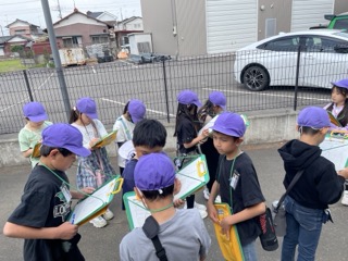 3年生から社会科が始まります。今日は学校の北側の様子を探検しに行きました。普段何気なく通っていた道もよく見てみると家が多かったり、田畑が多かったり地区ごとに違っていることがわかりました。