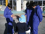 普段は中学校の先生から教えてもらっている中学生ですが、この3日間は幼稚園児を教える〝先生〟です絵文字:会議教室や園庭の整備をして登園する園児を迎えます。