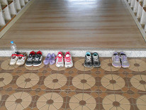 まず、うれしかったのは、子供たちの脱いだ靴がきれいに揃えて並んでいたことです。がんばルームの先生の指導もあったのでしょうが、靴箱でないのにしっかりと揃えて並んでいて、うれしくなりました。