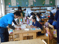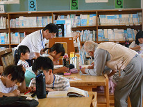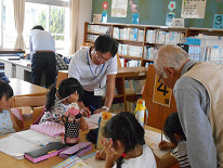 続いて、子供たちが勉強している図書室に行ってみると、本校の素敵な「がんばルームの地域の先生方」が子供たちに寄り添って、丁寧に優しく教えてくださっていました。昨年度もずっと紹介してきましたが、本校のがんばルームは、勉強するという環境がしっかりしています。そして、丁寧に見てくださる先生方ばかりです。子供たちにとって、最高の場所になっていると思います。静かに集中して、一生懸命頑張っていました。