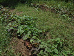 畑では、6年生が植えたサツマイモが葉を茂らせていました。