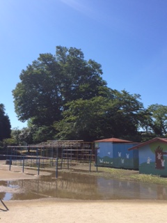 心配していたほどの強い雨や風はなかったようで、小学校も幼稚園も被害はありませんでした。それでも、城址の近くの高鉄棒のところは台風が過ぎていった印のように水たまりになっていました。唐沢堀と福川の水位もそれほど上がっていませんでした。ただし、急に増水することも考えられますので気を付けて!
