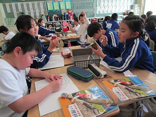 3年生は、理科の「電気の通り道」の学習で、回路の途中に導線ではないものをつないで、何をつなげると電球の明かりがつくのかを調べる学習をしています。今日は、実際に実験で使うものを手にとって予想をしてみました。いろいろと意見が分かれていました。予想で大切なのは『根拠』(そう考える理由)で、なんとなくそう思うでは勉強になりません。理科では「『根拠』のない予想はよそう!」と、ある方が言っていました。