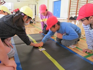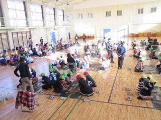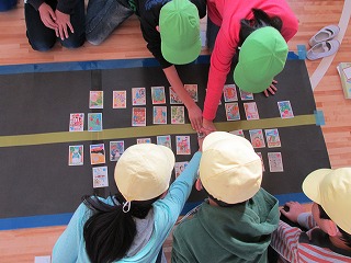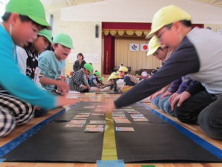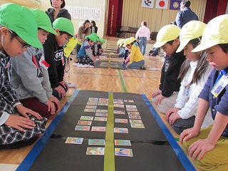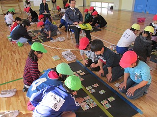 読み札が読まれるたびに、「はいっ!」と大きな声が体育館に響いていました。喜んだり悔しがったりしていた児童も、次の札になると一転、集中した表情をしていました。PTA役員の保護者の方々には、運営や審判等で大変お世話になりました。
