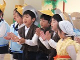 劇で子供たちがかぶるお面や身に付ける衣装、体育館を舞台に変える背景など、一つ一つが先生たちの手作りです。園児が降園した後こつこつ作り上げてくれました。そうしたサポートも子供たちを輝かせてくれていました絵文字:キラキラみんなの支えや応援をしっかりと受け止め、これまでの練習で身に付けたことを思い切り演じきった子供たちは、窓から差し込む冬の日差しのせいだけでなくキラキラと輝いていました絵文字:キラキラ