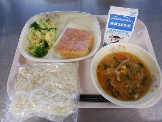 抹茶入りきな粉揚げパン・春雨サラダ・煮ぼうとう・