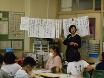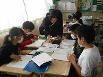 最終的に意見文を書いていくのですが、その前の段階で「自然保護について自分で考えたことを発表しあい、自分の考えを広げたり、深めたりする」ところの授業でした。大変落ち着いた中で、子供たちは自分の考えをグループ内で発表し、また、友達の発表を聞いて「もっと、こうした方がいいと思うよ」などと、話していました。まさに、これからの子供たちが求められている力を育てている授業でした。