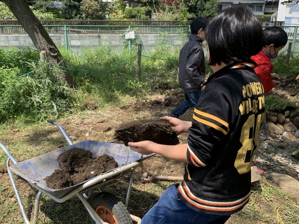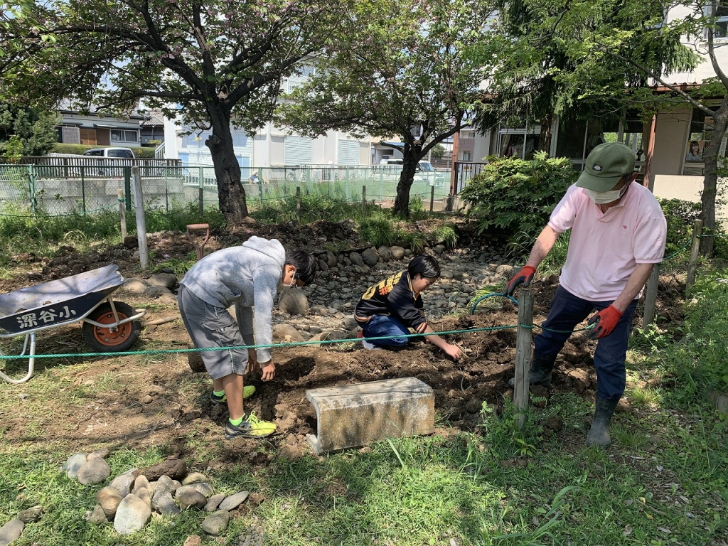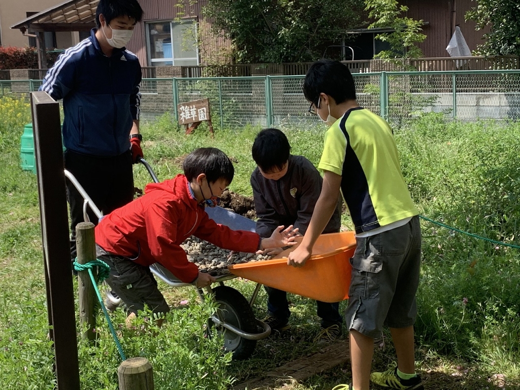 今日もビオトープの整備をA先生を中心にがんばっていました。