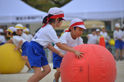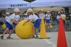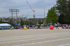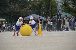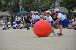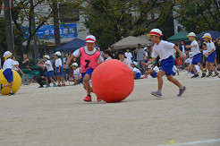 17  1年生学年種目「転がせ!巨大タピオカ~大玉ころがし大作戦~」