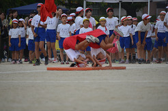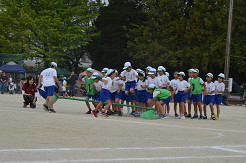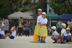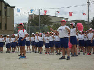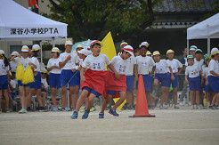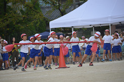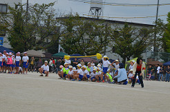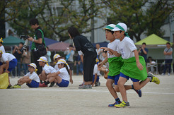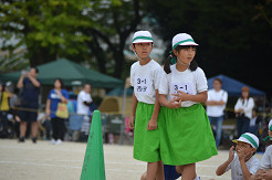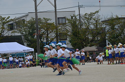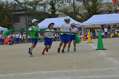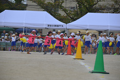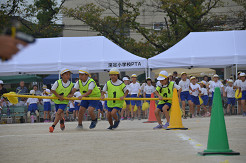 19  3年生学年種目「2人で協力!デカパンリレー」