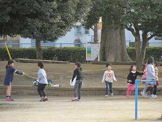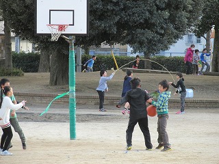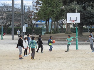 校舎の中はとても静かな深谷小学校ですが、楽しそうな声がしたので外に出てみると、雨上がりの校庭で学童の子どもたちがたくさん遊んでいました。寒さに負けず、元気いっぱいに遊ぶ子どもたちを見ていると、こちらも元気をもらえる気がします。やはり学校には子どもたちがいないと!