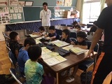 昨日から1年生も加わりました。ちいきの先生の指導の下、しっかり座って勉強していました。私が部屋に入ると、「校長先生」「校長先生」と、かえってうるさくなってしまい、申し訳ないことをしてしまったと思いました。