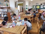 2年生以上の子供たちが勉強する図書室に入ると、さすがにもう慣れているので、自分のやるべきことをしっかりしていました。学校の宿題からやっている子、ドリルをどんどん進めている子等、いろいろでした。土曜日にちいきの先生からわからないことをすぐに教えていただけるって幸せですね。ちいきの先生方、2学期もどうぞよろしくお願いいたします。