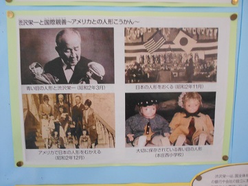 職員室西側の廊下のところに、「渋沢栄一翁関係」の資料が掲示してあります。