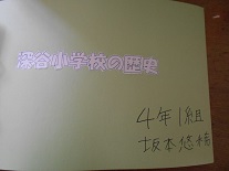 さらに、机の上には、4年坂本さんの夏休み社会一研究『深谷小学校の歴史』が置いてあります。