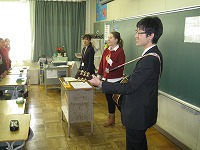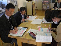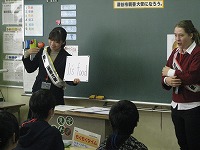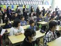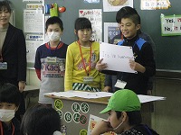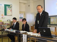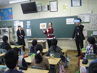 I love Fukaya !深谷親善大使になろう -6年生 外国語活動の授業研究会- 12月7日、市内の小学校と中学校の先生方にも来ていただき外国語活動の授業研究会を開きました。深谷小学校は本年度、深谷市教育委員会から「外国語教科化に係る教育研究」の拠点校に指定され、研究を進めています。 授業は5時間目の6年生の授業でした。「Is it ~?/Yes,it is./No,it isn't./It's ~.」を使って深谷市の名物や名所についてのクイズを出し合うという学習を公開しました。6年生は深谷市のよいところを紹介するAmbassador(親善大使)として、積極的に英語を使っていました。また、教科化を意識し、話したり聞いたりしている英語を、文字と繋げて意識させる活動も取り入れました。 授業後には、会場を図書室に移して、参加した先生方による研究協議会を行いました。今回は、篠崎前校長先生にご指導をいただきました。小学校、中学校の先生から、本日の授業や10月に行った放課後のモジュール学習(短時間帯授業)など深谷小学校の取組についていろいろな質問や意見が出されました。 指導者の篠崎先生からは、深谷小学校の取組の意義について分かりやすく解説していただくとともに、今後の研究の方向性も示していただきました。本日の研究協議を活かして、更に深谷小学校の取組を充実させていきます。