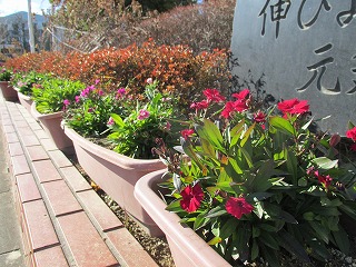 花も元気に育っています。冷たく強い風が吹こうとも、深谷小学校の花はどれもびくともせずにきれいに咲いています。子供たちがうさぎや花に負けずに元気でたくましく冬休みを過ごせるよう、祈っています。
