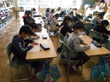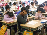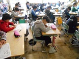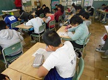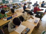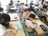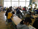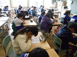 8時15分のチャイムを待っていたかのように、鉛筆を走らせる音が響きます。担任の説明を聞き、行うことをしっかり理解してから始める学年もあります。それぞれの学年の課題に向けて、頑張っていました。