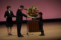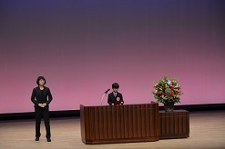 2年生の部で本校のOさんが選ばれ、大勢の前で「なかまはずれ」という作文を発表しました。登場した時には、周りから「かわいい!」という声が飛び交いました。作文発表の中で一番小さい学年だったのですが、落ち着いてしっかり読むことができました。大変立派でした。