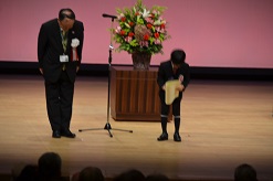 10月20日(日)午後、花園文化会館アドニスで「ふかや・ふれあい人権セミナー」が実施されました。ここでは、深谷市民謡連盟のオープニングセレモニーに続いて、開会行事、優秀人権作文発表と続きました。この優秀人権作文は、深谷市内小学校2年生から中学校3年生までで、それぞれの学年1名の選ばれた児童生徒が作文を読むというものです。