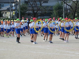 朝、全校で体育館にて6年生の皆さんにエールをおくりました。5年生の威勢の良い掛け声にのって、6年生へ気合をプレゼント。10/7(火)の本番では、全力を出しきり悔いなく、怪我のない運動会にしてほしいです。