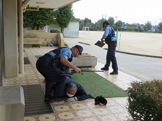 2時間目に深谷警察署と連携した不審者対応の避難訓練を行いました。実際に110番通報してお巡りさんが到着するまでの間、教職員がさすまたを使って、不審者の侵入を防ぐ訓練をしました。児童は机を使ったバリケードを作り、教室で静かに避難できました。