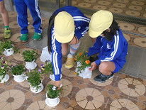 一人暮らしのお年寄りに花と手紙をお渡しする『まごころ訪問』。昨日、本校3年生が育てた花と、手紙を添えて、民生児童委員の皆様に配付のお願いをする会がありました。