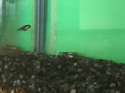 鮭の赤ちゃんは、水槽にかけた布をとってみると、お腹の赤い袋がとれて元気よく、勢いよく泳いでいるのが数匹いました。