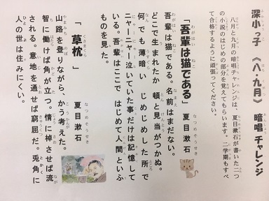 8・9月暗唱チャレンジ(「吾輩は猫である」「草枕」)←クリック