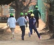 子供たちは、学校に来ると準備を整えた後、校庭に出てきます。