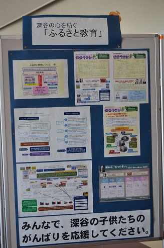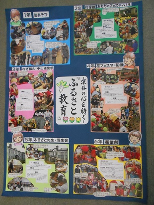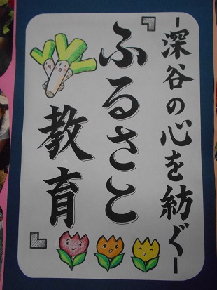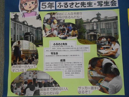 深谷市では、次代を担う自覚をもった子供を育むため、「ふるさとにふれ、ふるさとを理解し、誇りに思う」心や態度を育てることをねらいとした、深谷の心を紡ぐ「ふるさと教育」を推進しています。本校でも、この「ふるさと教育」についての取組を学年ごとに行っております。本校の展示物を紹介いたします。