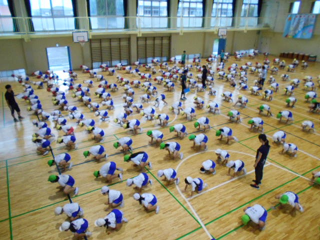 体育館で1年生も「深小っ子体操