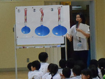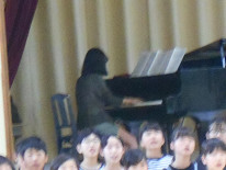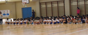 次に、よい姿勢、息を吸って吐き出すこと等に気をつけて、全員で校歌を歌いました。いつもよりきれいな校歌を聴くことができました。