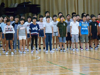 初めに、音楽主任から歌う姿勢、呼吸の仕方等についての話がありました。